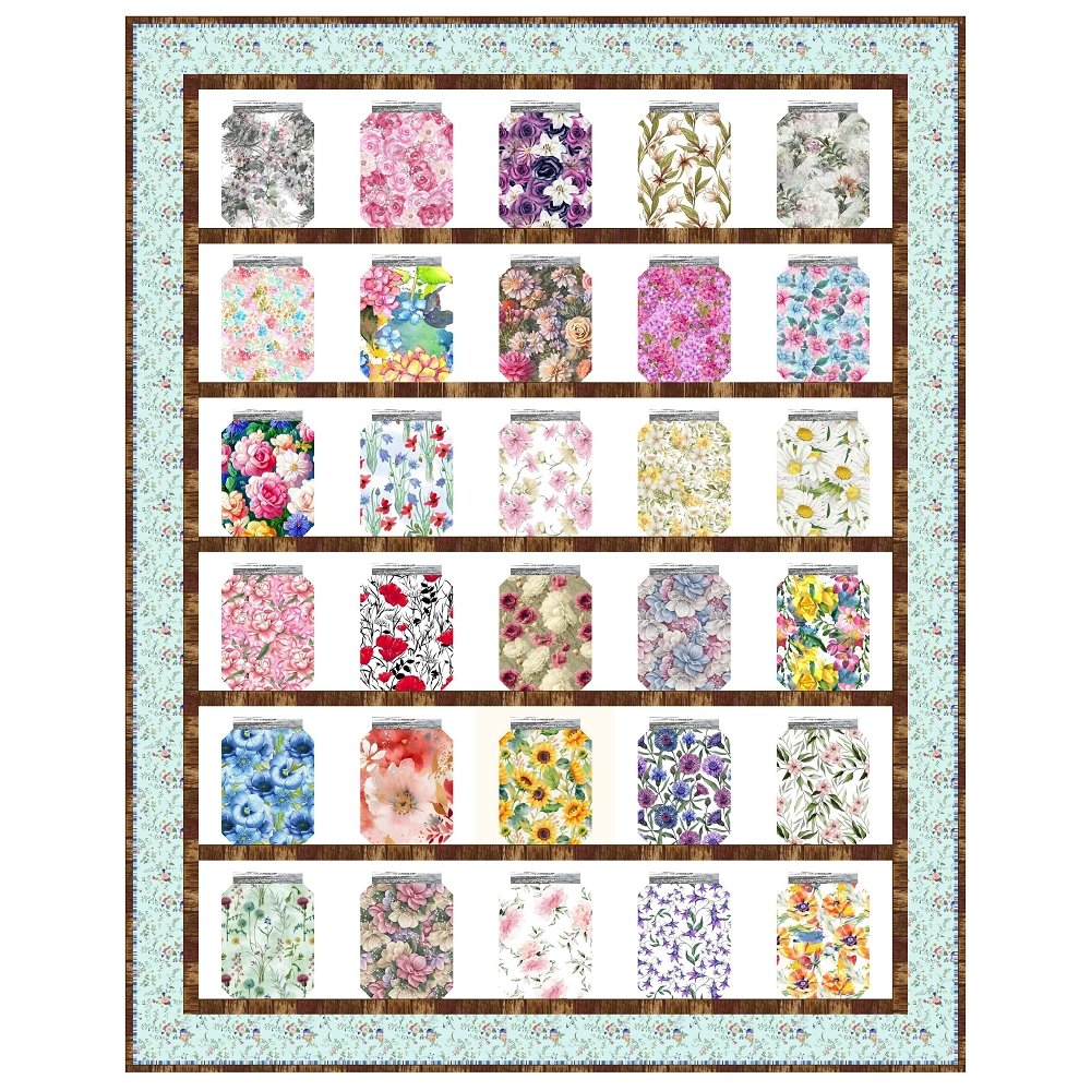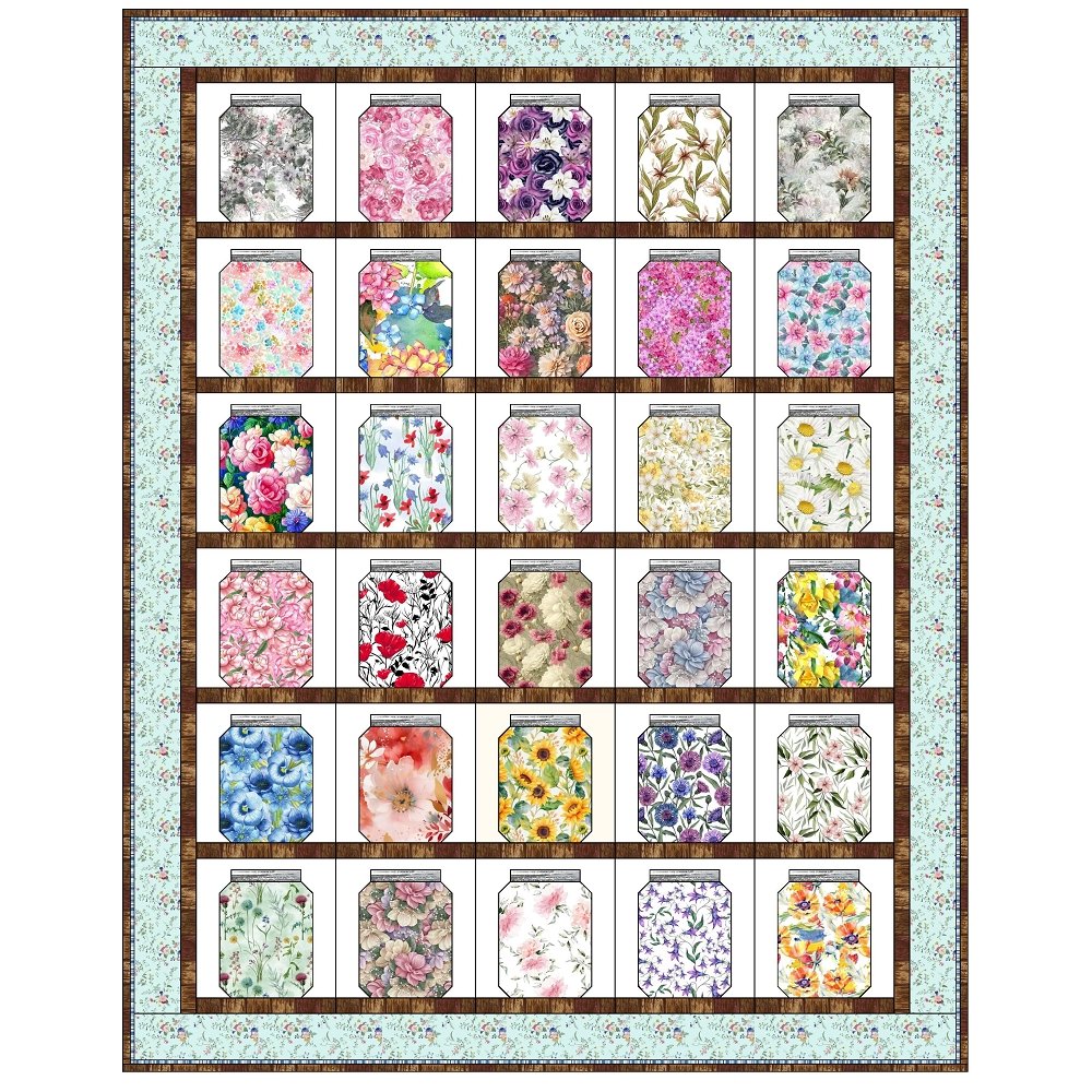 Mason Jar Quilt Kit - Flowers 54 1/2" x 68 1/2"