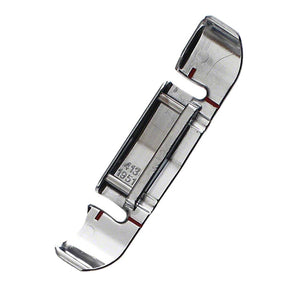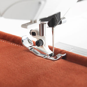 The Mega Piping Foot is ideal for inserting thick home décor piping into seams and edges, giving your projects a polished, tailored look. It allows you to sew the trim between two layers of fabric in a single step. You can also create custom piping for a unique, professional finish. Designed for versatility, this foot can be snapped onto either the right or left side of the needle, making it easy to both create piping and sew it seamlessly into your project while adding precise topstitching along the piping.