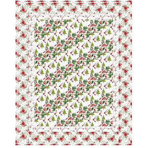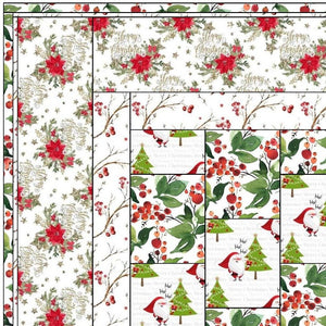 The Merry Christmas From Santa Lap Quilt Kit includes everything you need to make the quilt - the instructions and a total of 6 yards of fabric for sashing, flange binding, and backing. Batting is sold separately. The finished size of this quilt is 41 1/2" x 51 1/2".