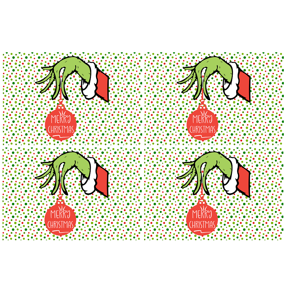 Merry Christmas Grinch Hand Placemats Fabric Panel Details