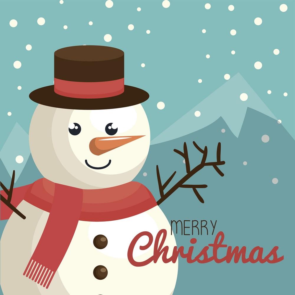 Merry Christmas Mountain Snowman Fabric Panel