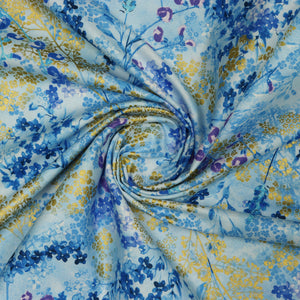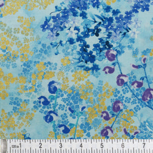 Metallic Sprigs Light Blue evokes the airy beauty of a spring meadow with a soft sky-toned background and clusters of wildflowers dancing across the surface. Shades of sapphire, cornflower, and soft lilac are layered in watercolor-like washes, accented by glimmering gold metallic sprigs that catch the light with every movement. This print brings a fresh, delicate feel to quilts, bags, and home décor, perfect for adding a peaceful, botanical touch with a bit of shimmer.