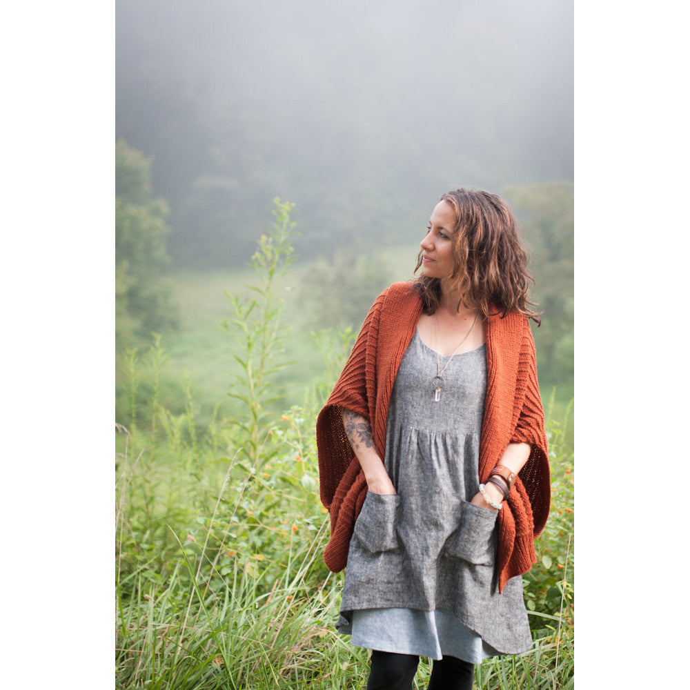 The Metamorphic Reversible Dress Pattern by Sew Liberated features an instruction booklet and pattern pieces printed on sturdy, thick paper, and stored in a durable cardstock box. It features a reversible design and a high or low waist seam that makes the Metamorphic Reversible Dress perfect for layering. Fitting is simple, with no bodice darts (drafted for a D-cup and below), and an abundant waistline fitting sizes 0-24. The included video tutorial teaches the "Burrito Method" for creating a reversible bodice. This adorble frock can be worn casually with jeans or dressed up with a sweater!