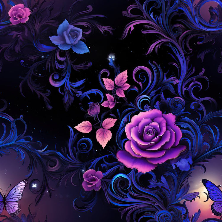 The Midnight Garden Pattern 4 Fabric is a part of the Midnight Garden Fabric Collection printed by Sewing Parts Online. Digitally Printed on 100% cotton and measures 43-45" wide. Sewing Parts Online prints are only available through Sewing Parts Online, not sold in stores or anywhere else online.