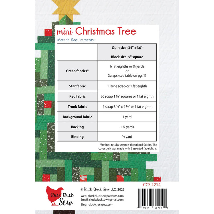 Designed by Allison Harris, the Mini Christmas Tree Wall Hanging Pattern from Cluck Cluck Sew is an adorable miniature rendition of the Christmas Tree Quilt. Create this traditionally pieced design with fat eighths or fabric scraps. This design is perfect for confident beginner sewists. The pattern includes instructions to create a 34" by 36" quilt. For best results, use non-directional fabric. The Mini Christmas Tree Wall Hanging Pattern has detailed instructions and a suggested list of materials.