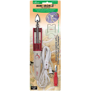 The Clover Mini Iron II is ideal for tight, hard-to-reach spaces for small projects. The compact size makes it perfect for detailed work. It features adaptable tips (sold separately) for quilting, sewing, and crafting as well as Celtic quilting, stained glass quilting, and applique handicraft! Iron stand and screwdriver included.