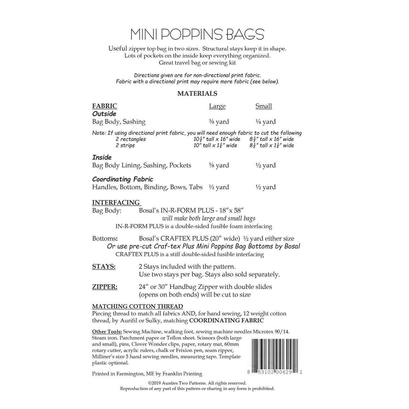 Mini Poppins Bag Pattern with Stays - Aunties Two