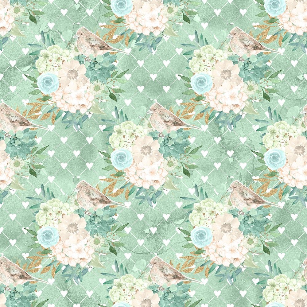 Mint Dreams Bouquets on Hearts Fabric