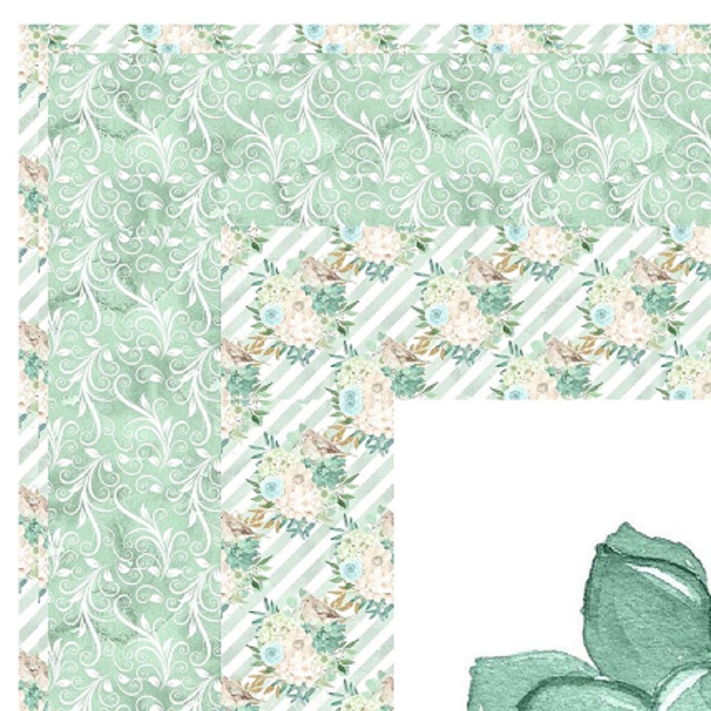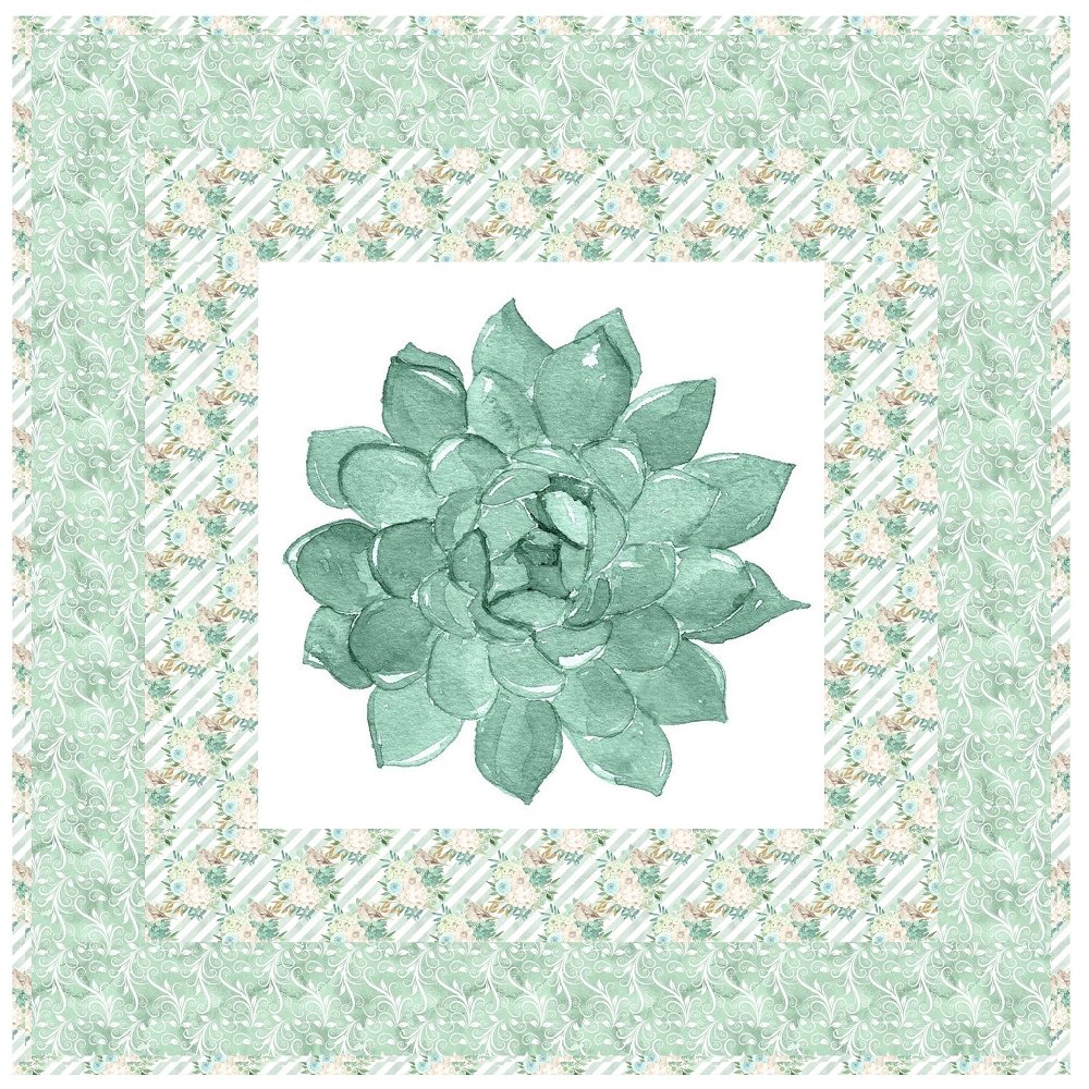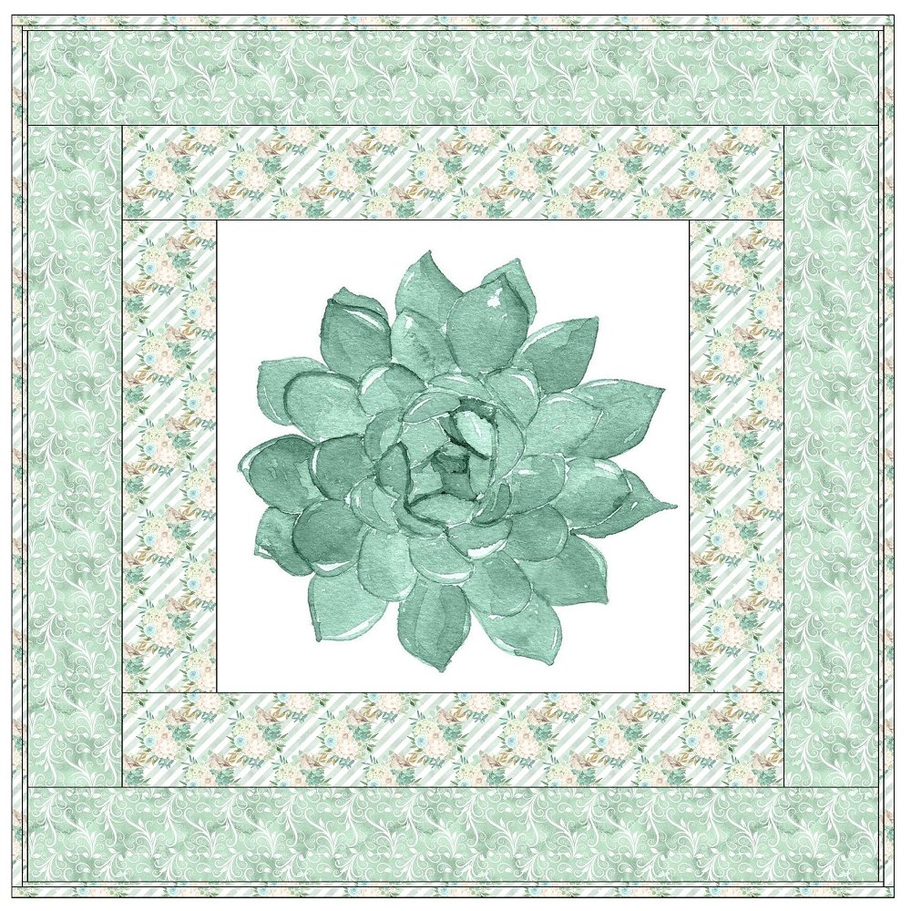 The Mint Dreams Flower Wall Hanging includes everything that you need to make the quilt - the instructions and a total of 3 1/2 yards of fabric and a 23" panel. It has two borders and is finished with a flange binding. Batting is sold separately. The finished size of this quilt is 42" x 42".