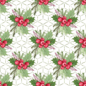 The White Mistletoe Christmas Fabric is part of the Mistletoe Christmas Fabric Collection printed by Sew Creative Fabrics. Digitally Printed on 100% cotton.