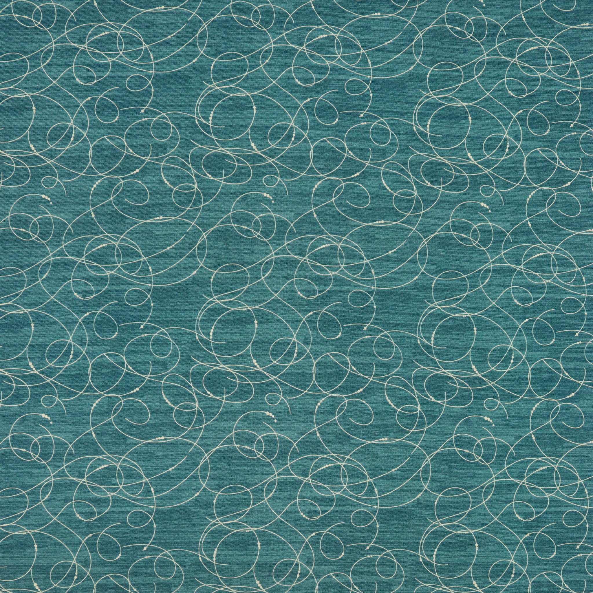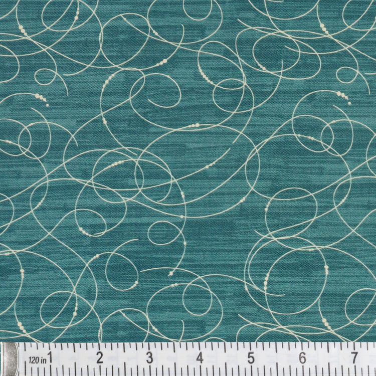 With the moody allure of ocean depths, Etched Glass in Dark Teal evokes a sense of calm sophistication. The deep teal background ripples with off-white swirling lines that mimic the ornate detail of hand-engraved crystal. Use it to add a rich pop of texture and timeless flair to your next quilt or sewing project.