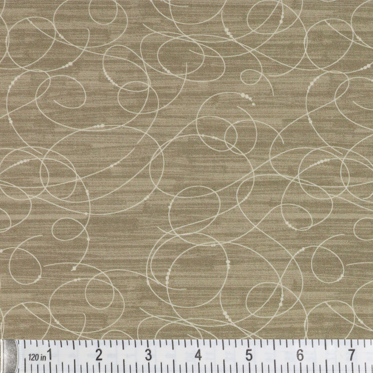 Etched Glass in Taupe is the perfect balance of subtle texture and vintage appeal. Its neutral gray-beige background hosts a fine lattice of winding cream-colored filigree, reminiscent of timeworn cut glass. This print’s gentle contrast and elegant patterning make it an ideal coordinate for soft, earthy palettes or minimalist sewing projects.