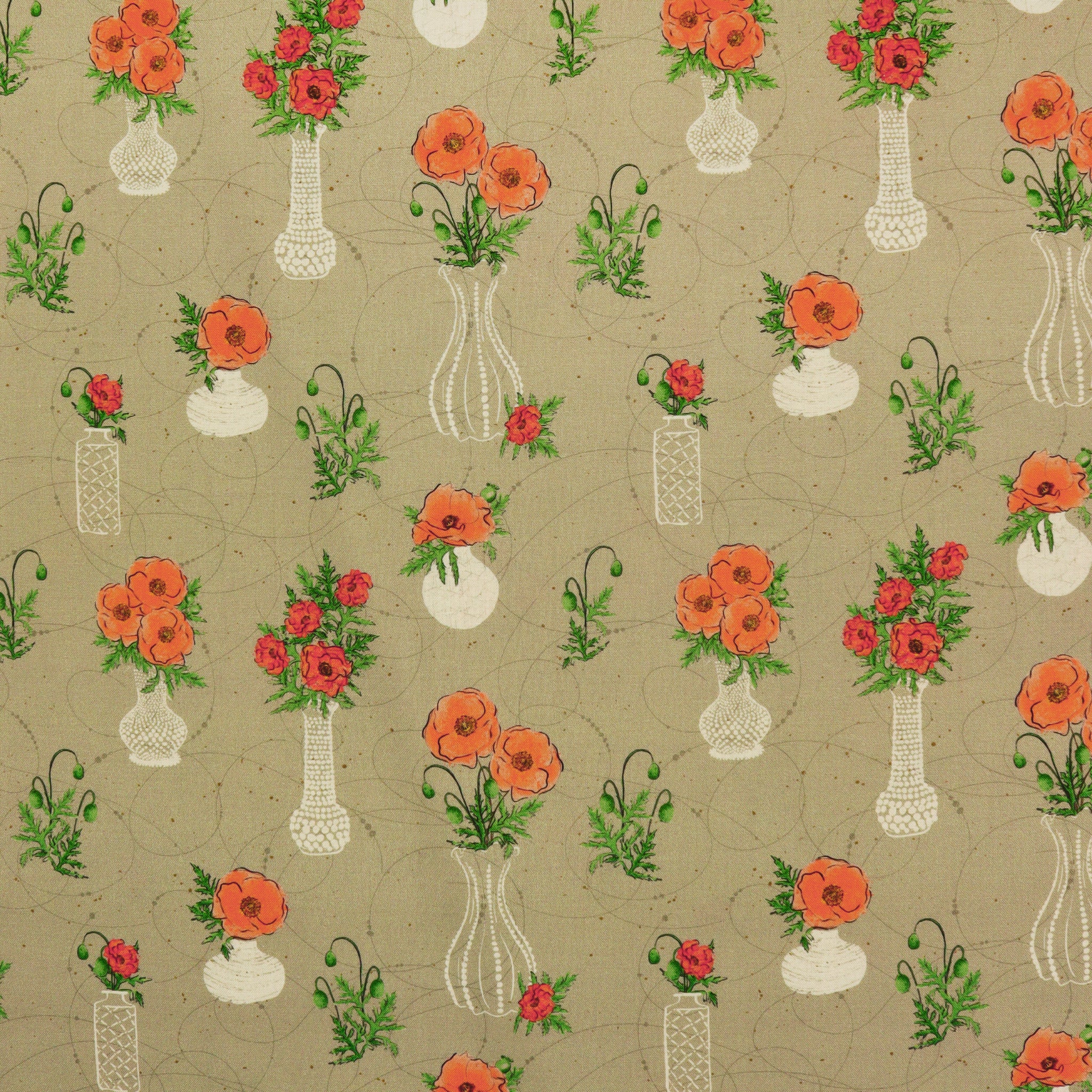Heirloom Treasures Taupe offers a deeper, earth-toned version of this sentimental floral design, pairing beautifully drawn blossoms and textured vases with a warm taupe backdrop. This vintage-inspired print features graceful linework and painterly details that harken back to cherished garden moments and passed-down treasures. Whether you're crafting a statement quilt or creating accessories with a nostalgic feel, the muted tones and classic motifs give this fabric a cozy, grounded elegance.