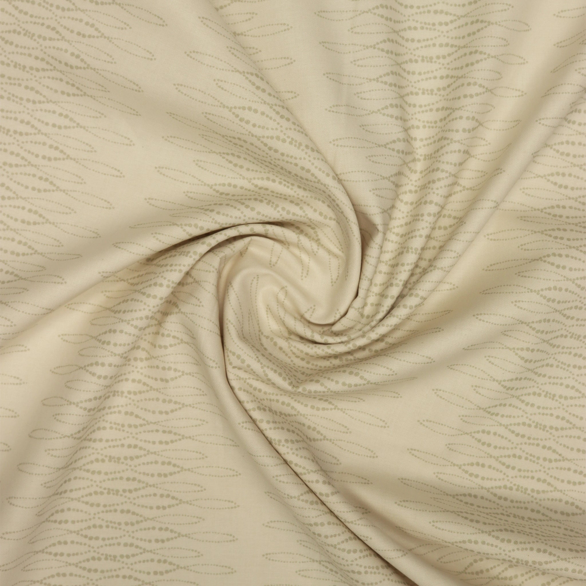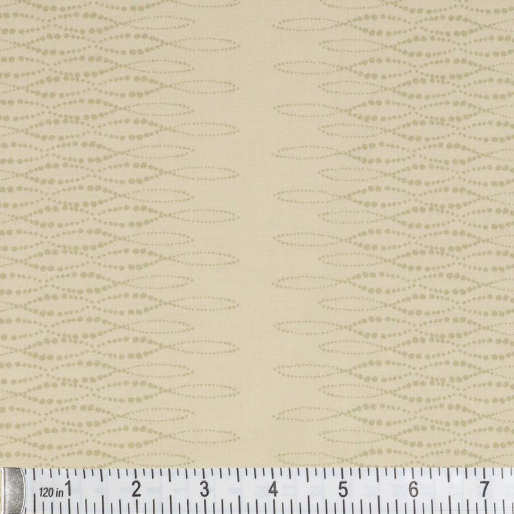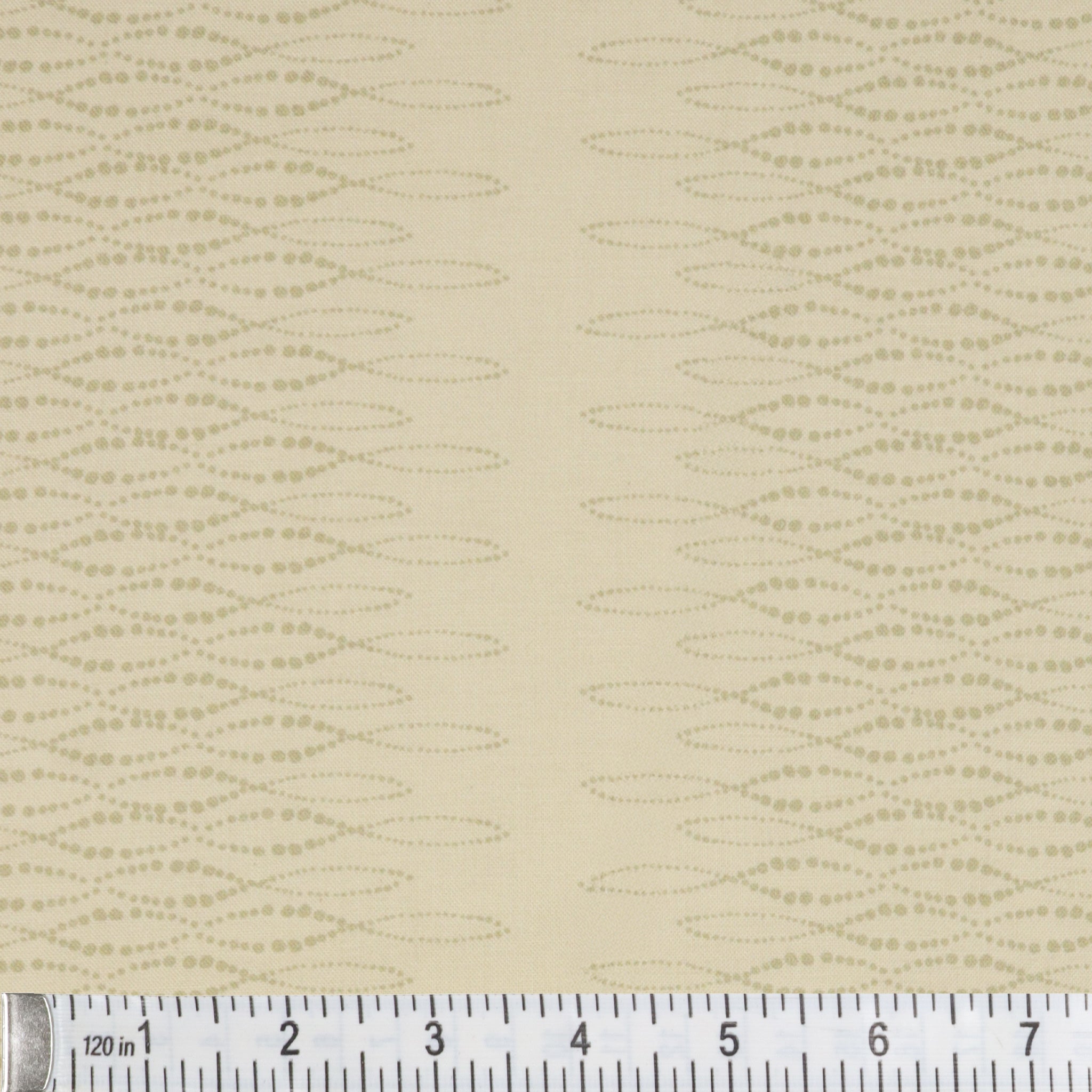 Loopy Lace Natural offers an airy, organic aesthetic with its cream-toned background and soft taupe dotted linework. The symmetrical, open design evokes the lightness of heirloom lace or gentle stitching patterns, making it a soothing blender print. This versatile neutral works beautifully with both traditional and modern palettes, adding texture without overwhelming surrounding designs.