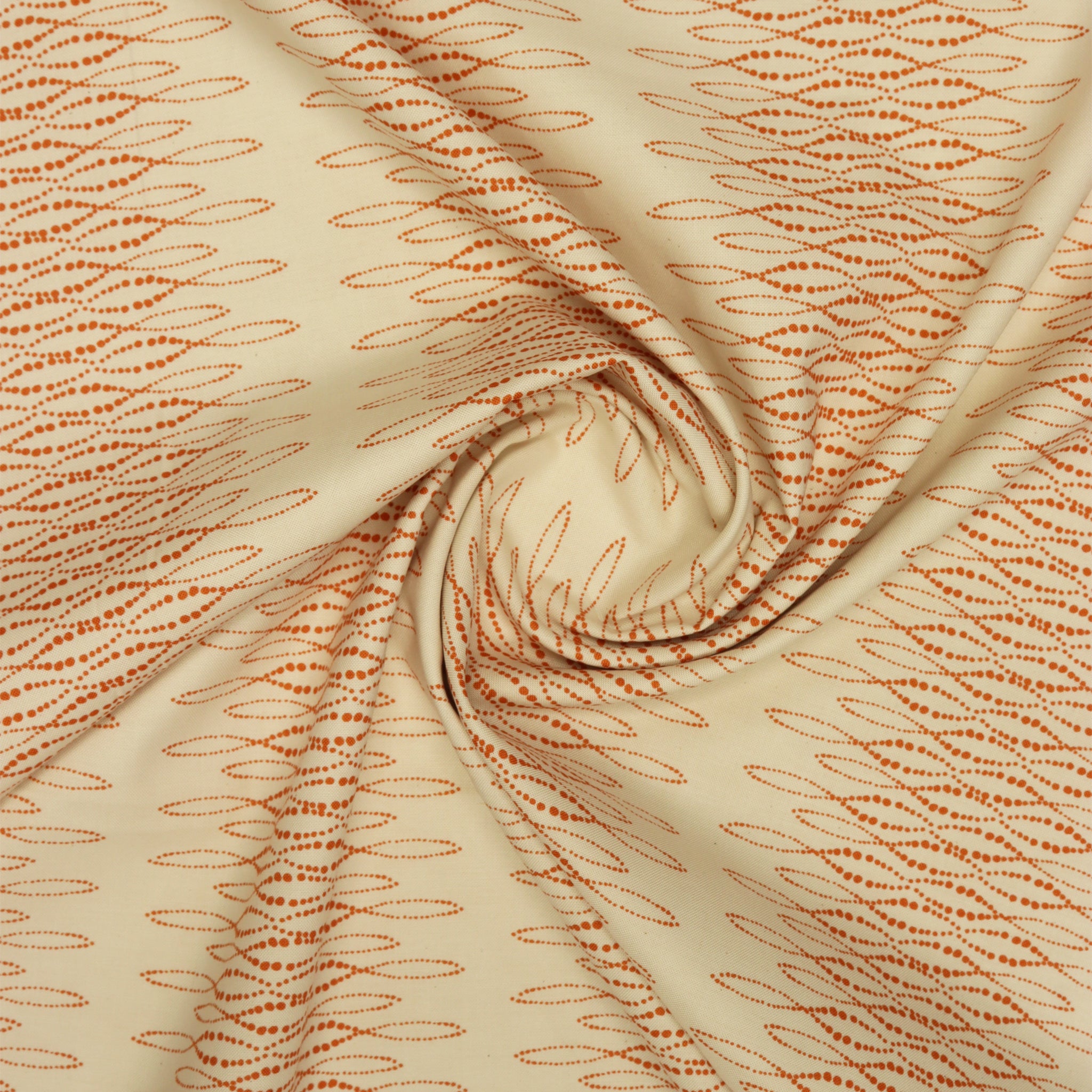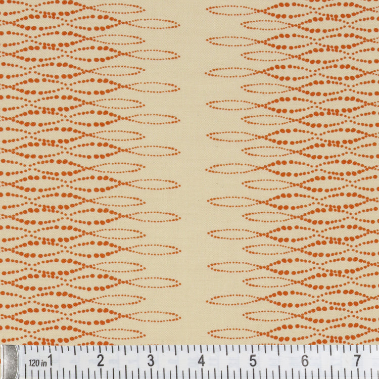 With its sunbaked hue and rhythmic looping design, Loopy Lace Terracotta adds warmth and energy to any sewing project. The rich, earthy terracotta ground is layered with a lace-inspired motif composed of petite dots dancing in geometric waves. This print is perfect for pairing with florals or solids to evoke rustic elegance and vintage flair in quilts, garments, or home décor.
