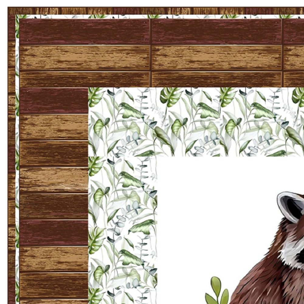 Mom and Baby Raccoon Sitting on a Stump Wall Hanging 42" x 42" Details