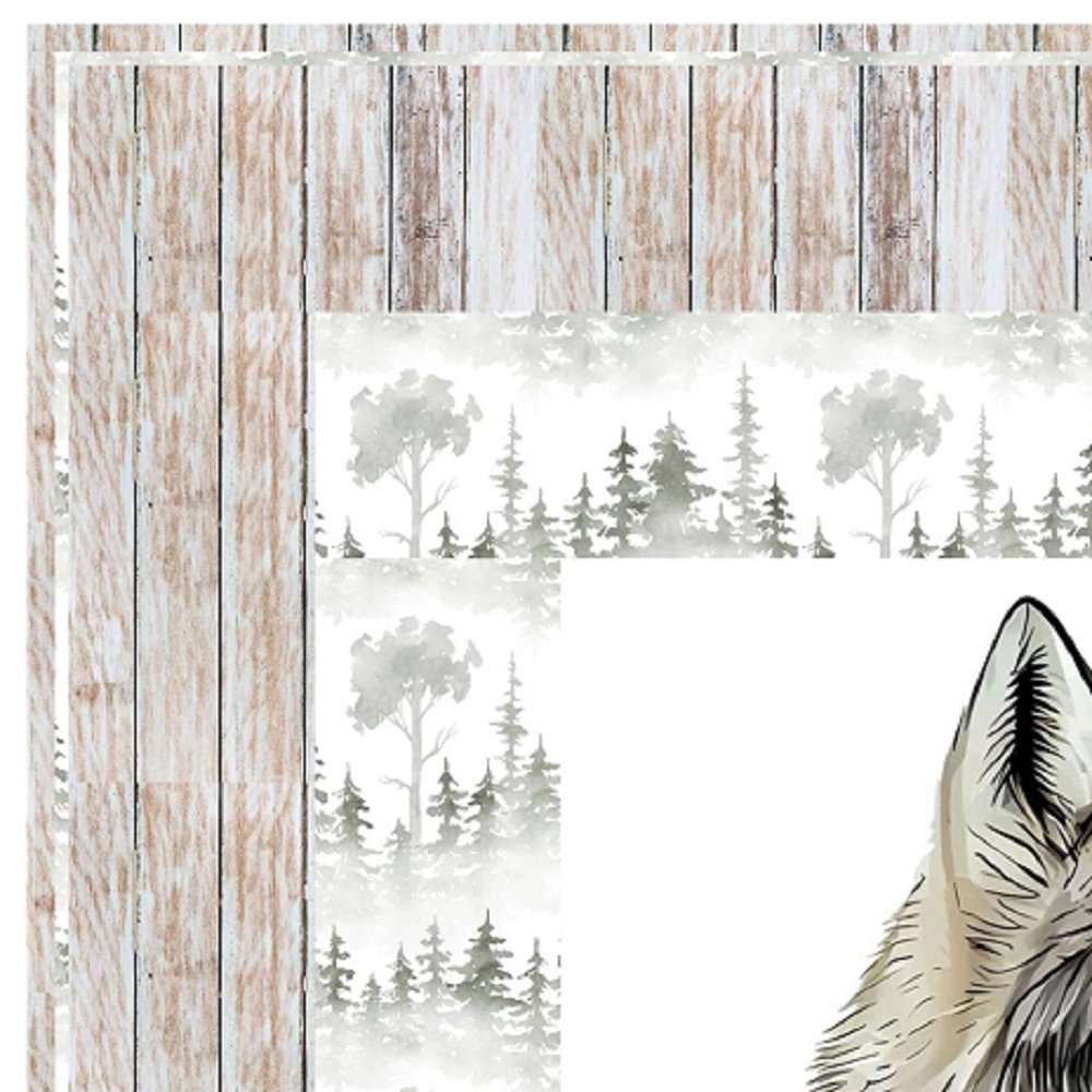 Mom and Baby Wolf in the Woods Wall Hanging 42" x 42" Details