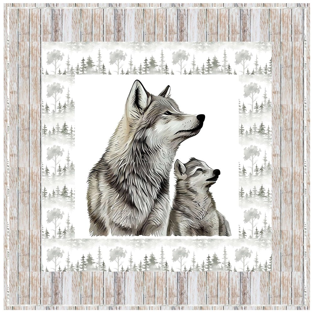 Mom and Baby Wolf in the Woods Wall Hanging 42" x 42"