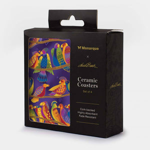Designed by Laurel Burch, these Monarque Ceramic Coasters make an excellent gift. Use them in the kitchen or scatter them throughout your house to help protect your furniture. Monarque Ceramic Coasters have a cork back to prevent them from slipping or sliding and come in a pack of four.