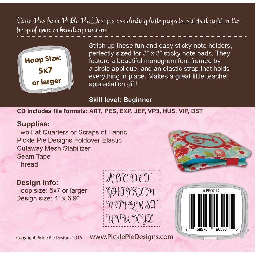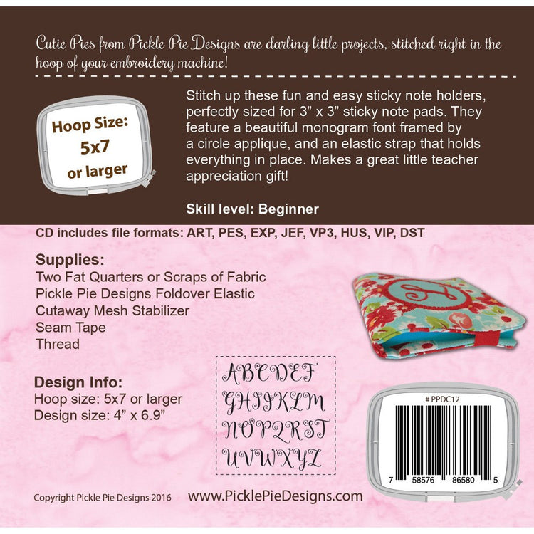 Monogrammed Sticky Note Holders Embroidery CD Details