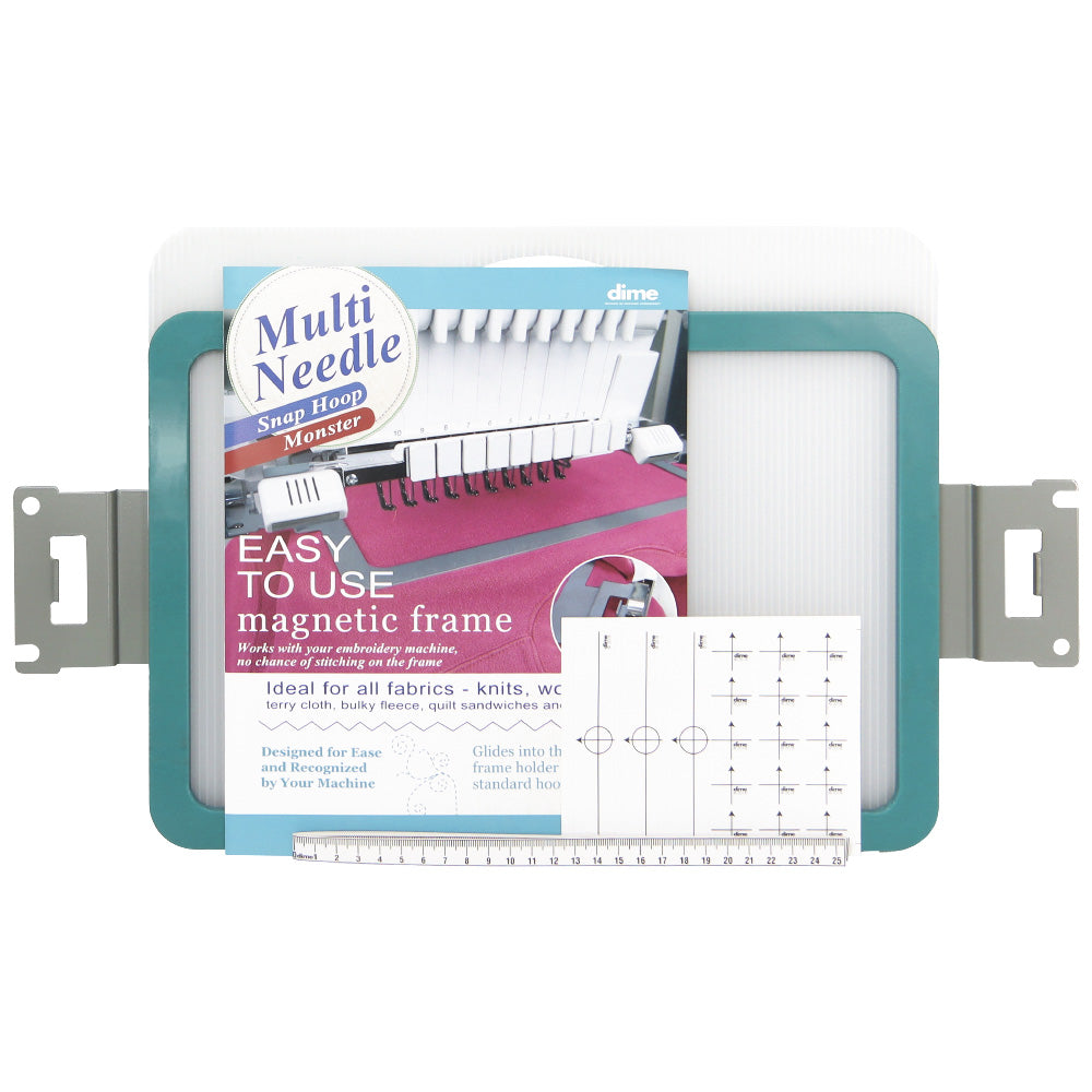 The Multi Needle Snap Hoop Monster is entirely flat and features two attachment points to the machine creating a strong, secure grasp on all fabrics. It comes with a flat magnetic top and metal bottom frame that includes a machine attachment recognizable by your embroidery machine. Effortlessly execute flawless, continuous embroidery when stitching quilts, towels, etc. The Snap Hoop Monster is available in multiple hoop sizes!