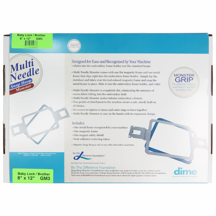 Multi-Needle Monster Snap Hoop for Babylock and Brother - 8"x12" Details