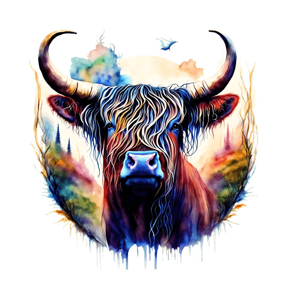 The Mystical Highland Cow Portrait Fabric Panel is a part of the Farm Animals Fabric Collection printed by Sewing Parts Online. Digitally Printed on 100% cotton.