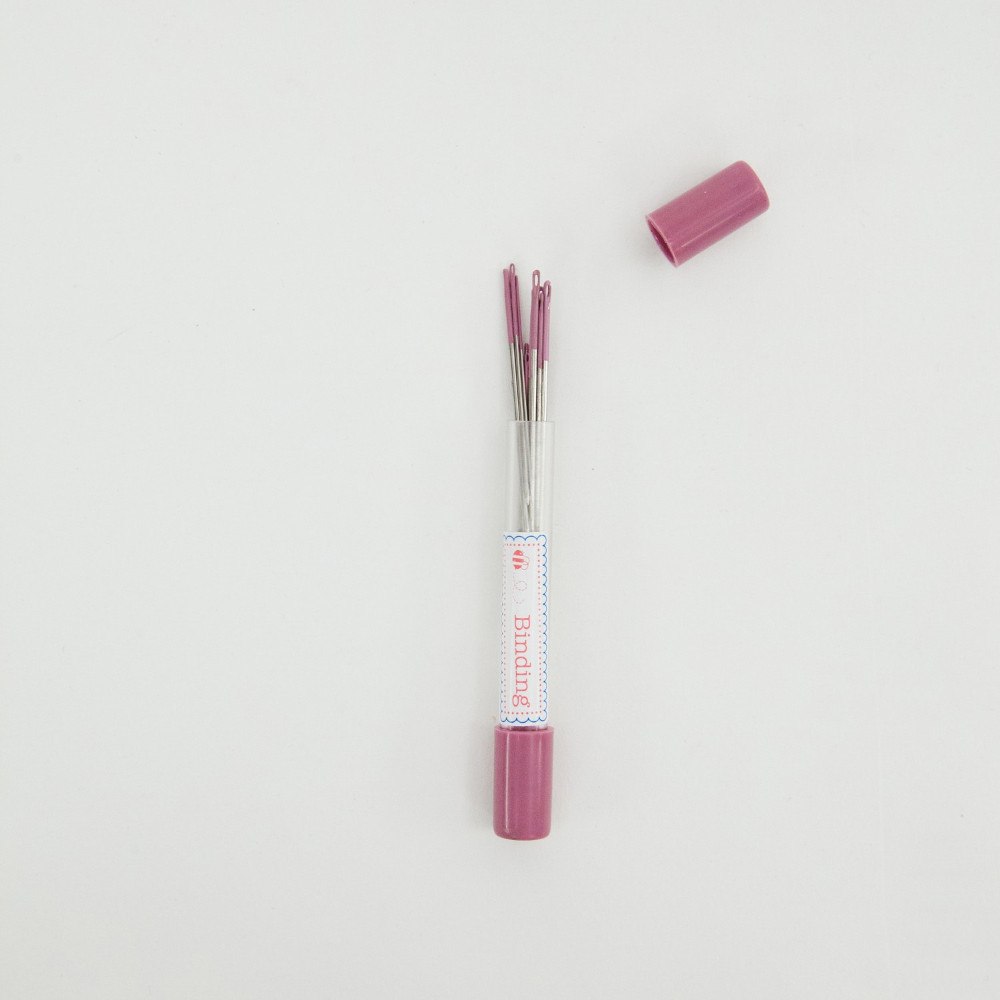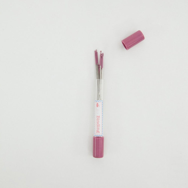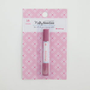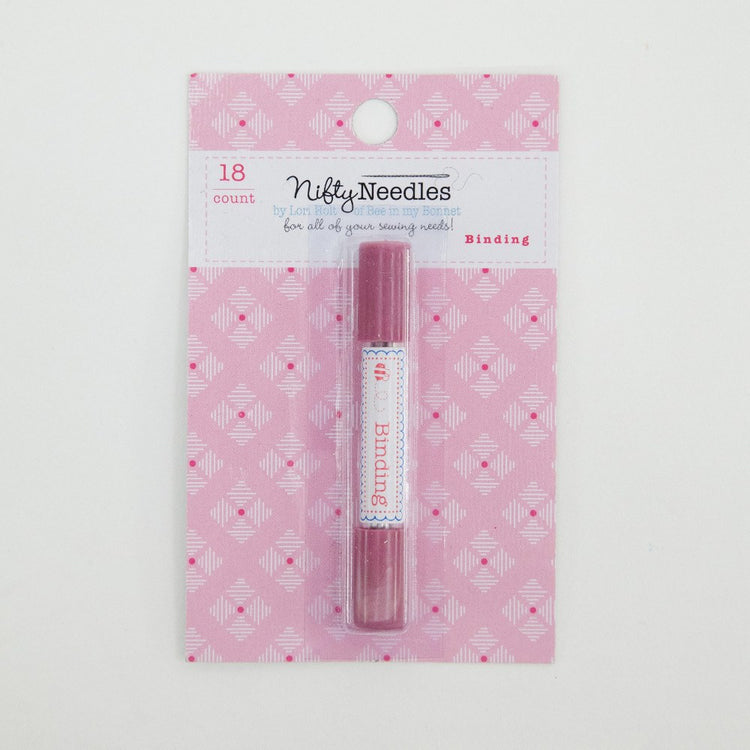 Use Lori Holt's Nifty Needles when binding quilts by hand. These Nifty Binding Needles are longer and have a bigger eye than regular hand needles, thereby making it easier to bind your quilt. Each Nifty Needle Tube includes 18 needles.
