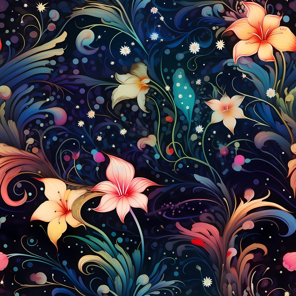 Nightlife Nouveau Floral Pattern #1 Fabric Details