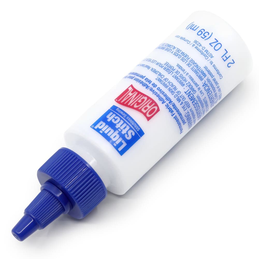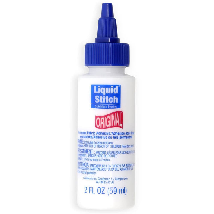 Use the Original Liquid Stitch from Dritz to secure hems or apply sequins, appliques, and other decorative items to all types of fabric. No sewing or heat setting is required to activate it. This glue dries quickly, is transparent, and is flexible once set. Liquid Stitch is a non-toxic permanent adhesive that is machine washable and dryable. As with all materials, always test on a scrap of your fabric before use. Liquid Stitch takes about 30-minutes to dry but is water-soluble until dry.