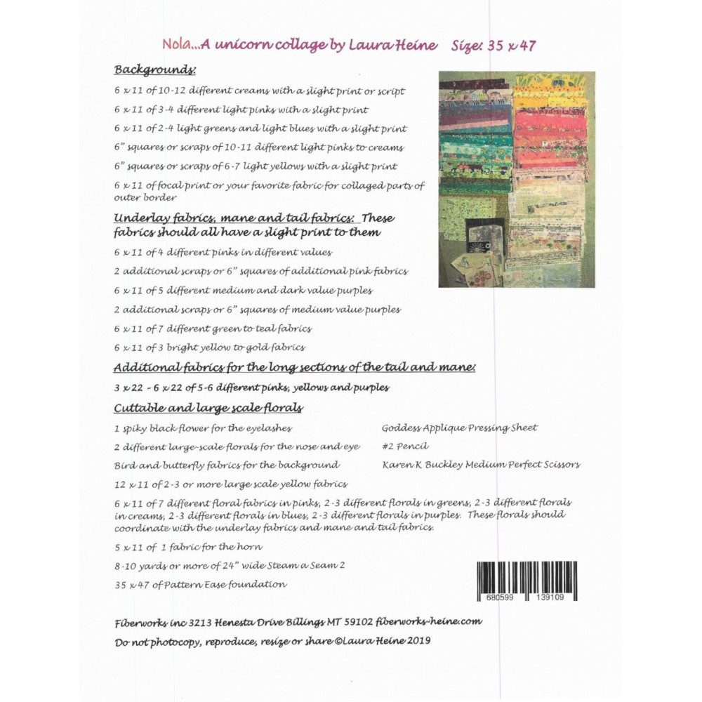 Nola is a gorgeous Unicorn collage pattern designed by Laura Heine's for Fiberworks. The finished quilt measures 35 inches by 47 inches. This intricate pattern includes step-by-step directions as well as a full-size pattern. For a full list of fabric requirements and tool recommendations, see product images.
