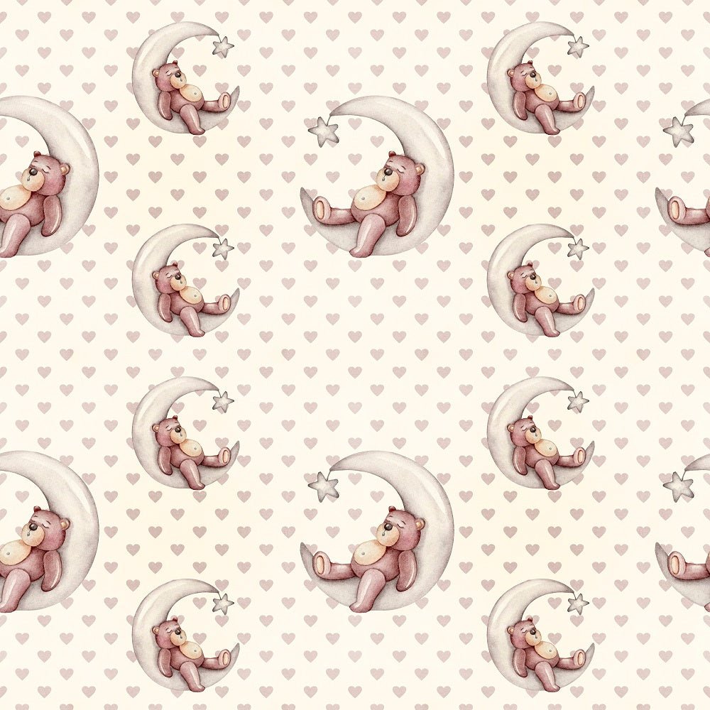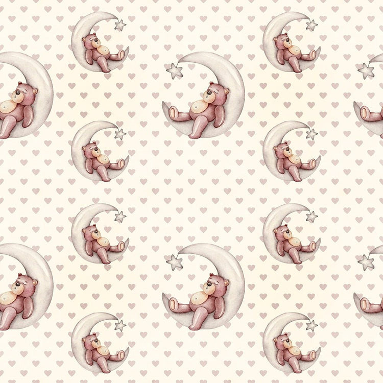 The Nursery Bear Sleeping Moon on Hearts Fabric is part of the Nursery Bear Fabric Collection printed by Sew Creative Fabrics. Digitally Printed on 100% cotton.