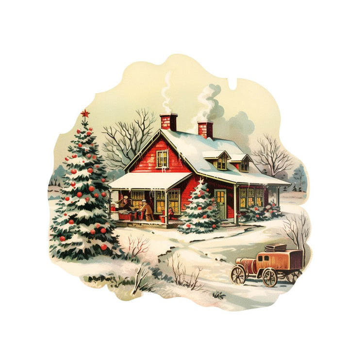 Old School Christmas Farm House #6 Fabric Panel