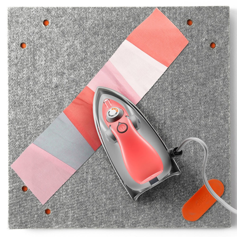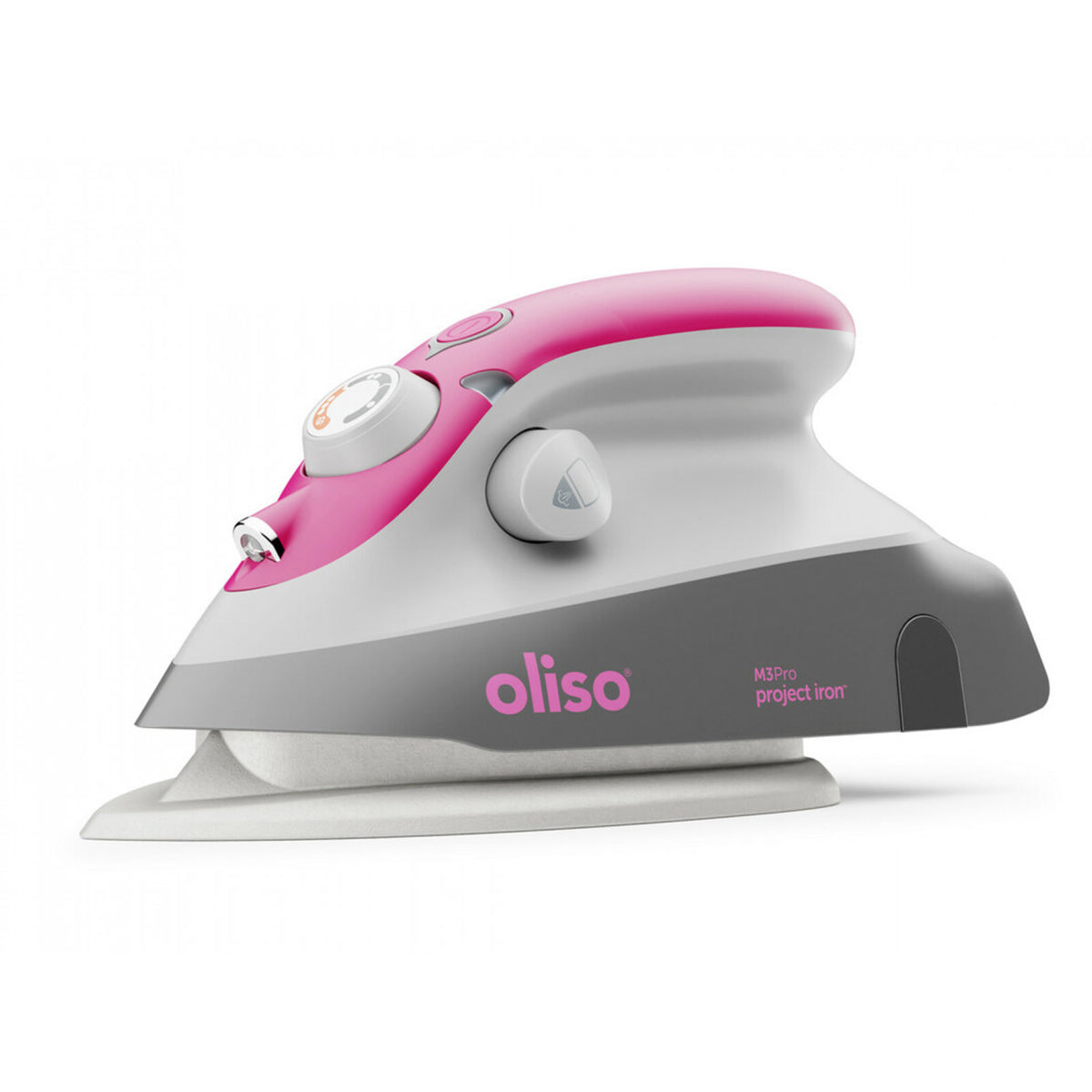 Get ready for take two on the wildly popular Oliso Project Iron. The new M3Pro Iron is tailor-made for sewing, quilting, and crafting. The Oliso M3Pro packs the punch of full-size iron into a compact, lightweight design, making it the perfect size to take with you when traveling. The M3Pro Project Iron features a diamond ceramic-flow soleplate, flat pressing surface, 2" detailer tip, an 8-foot cord, and patented LED light. The M3Pro Iron has been ergonomically designed to fit snugly into the palm of your hand and has been weight-balanced for precision movement to prevent strain on your wrist. Plus, with a 1000 watts of power, this Project Iron will heat up in seconds. The one-touch steam control provides two settings: horizontal burst and vertical burst. Make the Oliso M3Pro your go-to tool when sewing, quilting, or crafting. Available in four fun colors: aqua, coral, pistachio, and Tula Pink pink.