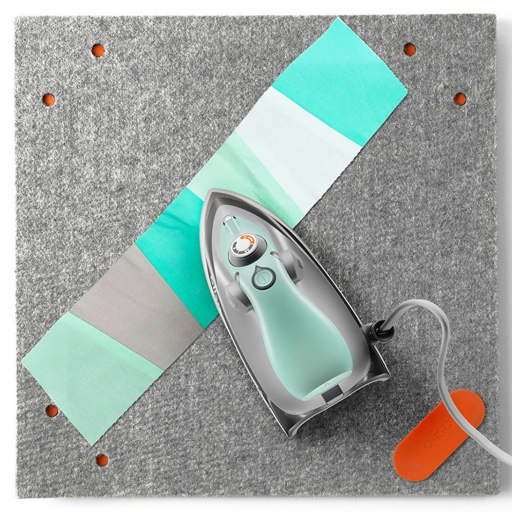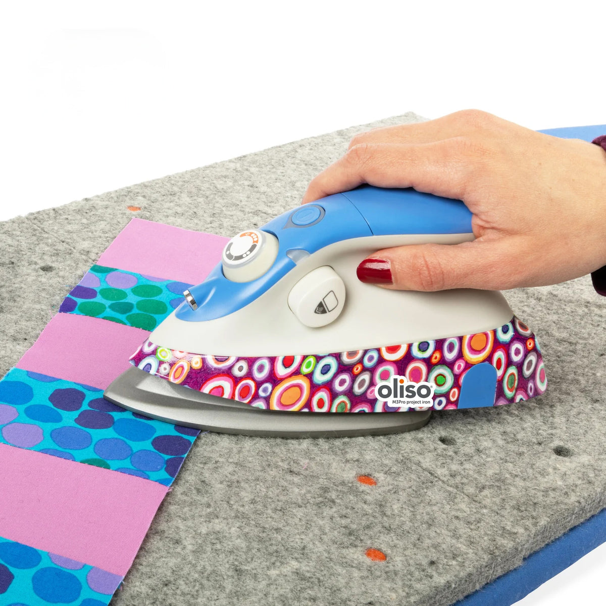 Get ready for take two on the wildly popular Oliso Project Iron. The new M3Pro Iron is tailor-made for sewing, quilting, and crafting. The Oliso M3Pro packs the punch of full-size iron into a compact, lightweight design, making it the perfect size to take with you when traveling. The M3Pro Project Iron features a diamond ceramic-flow soleplate, flat pressing surface, 2" detailer tip, an 8-foot cord, and patented LED light. The M3Pro Iron has been ergonomically designed to fit snugly into the palm of your hand and has been weight-balanced for precision movement to prevent strain on your wrist. Plus, with a 1000 watts of power, this Project Iron will heat up in seconds. The one-touch steam control provides two settings: horizontal burst and vertical burst. Make the Oliso M3Pro your go-to tool when sewing, quilting, or crafting. Available in four fun colors: aqua, coral, pistachio, and Tula Pink pink.