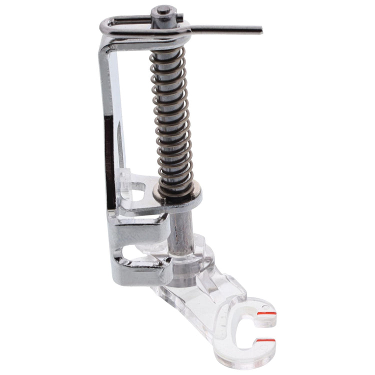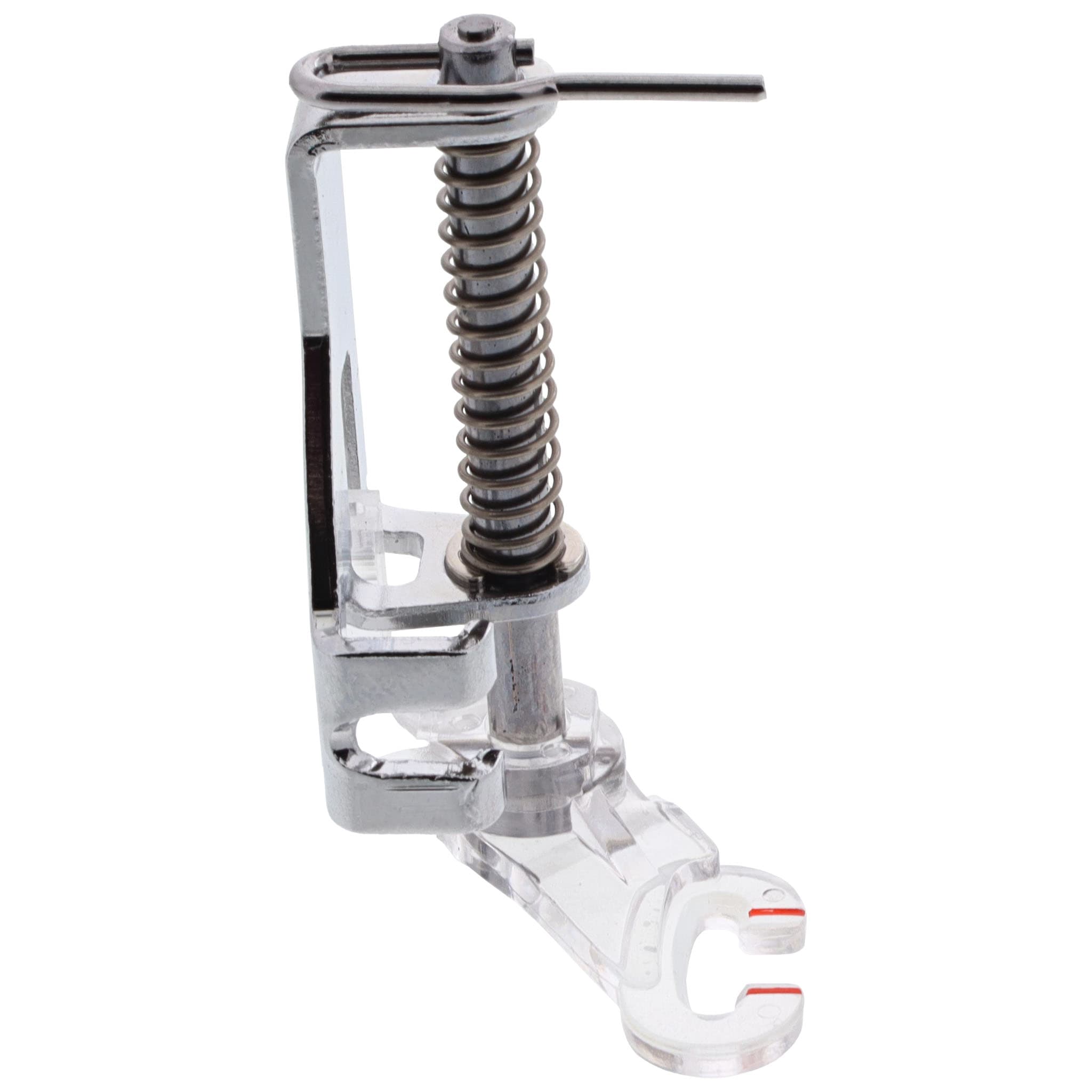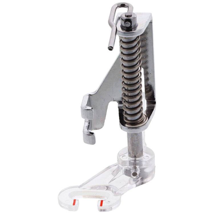 This Open-Toe Darning Foot is a tool to stop skipping stitches. It could be used for free-motion embroidery, stippling, darning, and monogramming. Being spring-loaded, the foot moves up and down along the needle. At the front of the foot, a cut-out allows maximum visibility to the needle.
