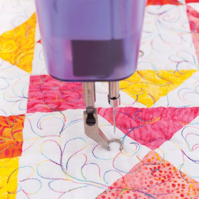This Open Toe sewing foot is open at the front so that the needle area is easy to see. It is helpful for free motion quilting designs or anytime a visual of the needle area is needed.