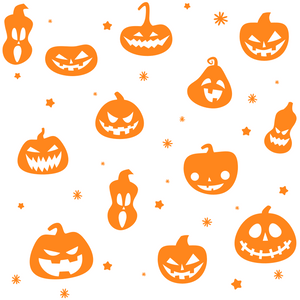 Orange Pumpkins & Stars Fabric - White