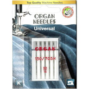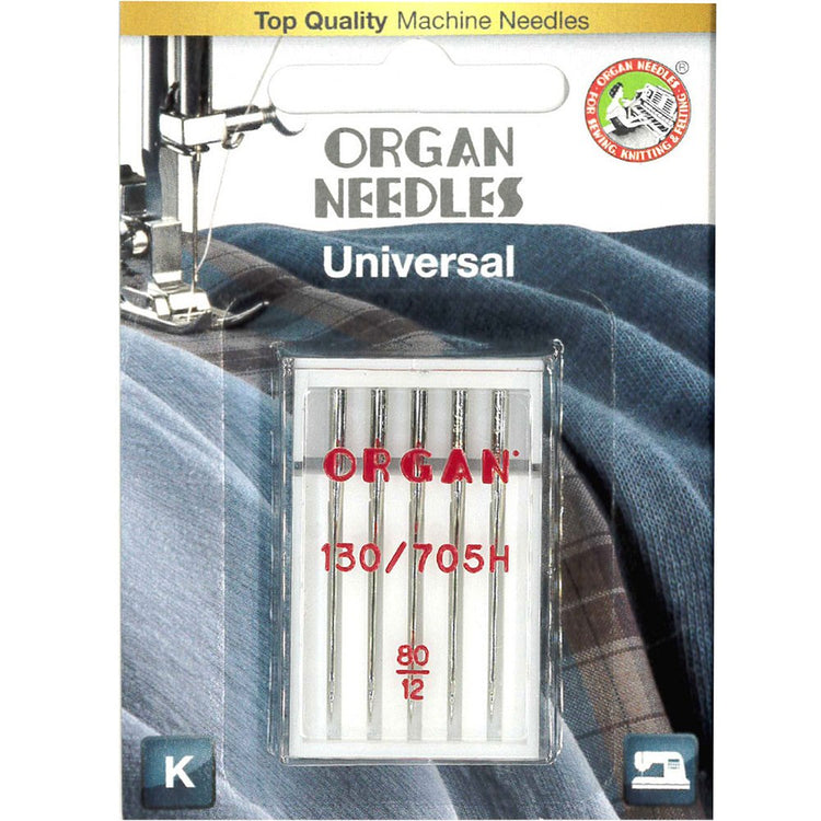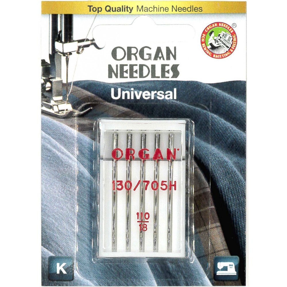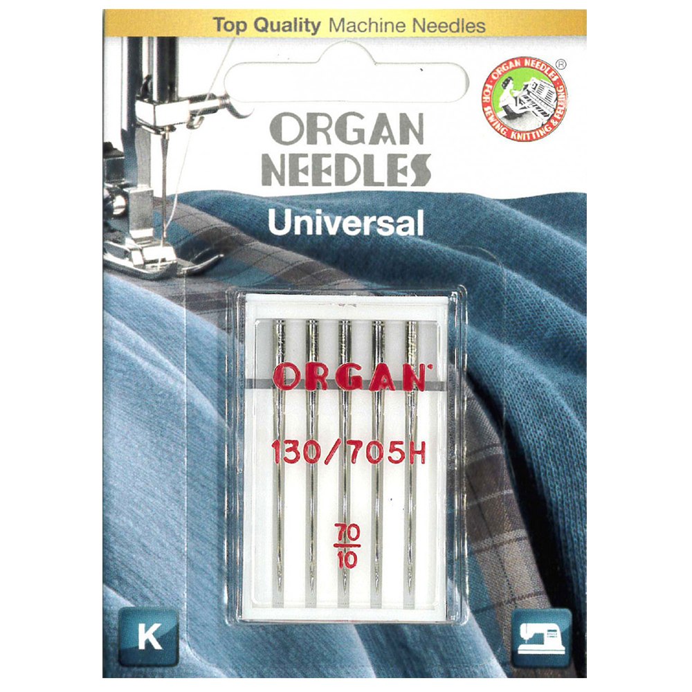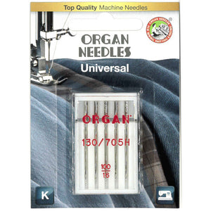 Organ Universal Needles are ideal for sewing on woven and knit materials. The 130/705H needle system is compatible with most home sewing machines. Please consult your sewing machine's instruction manual for compatible needles. This package of five Universal Needles is available in sizes 70/10, 80/12, 90/14, 100/16, 110/18, Assorted 70-90, and Assorted 70-100.