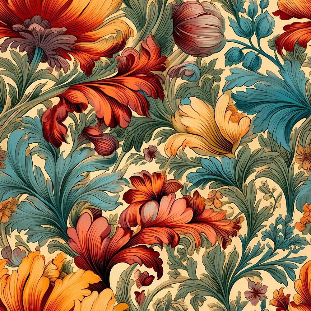 Ornate Renaissance Floral Pattern #6 Fabric Details