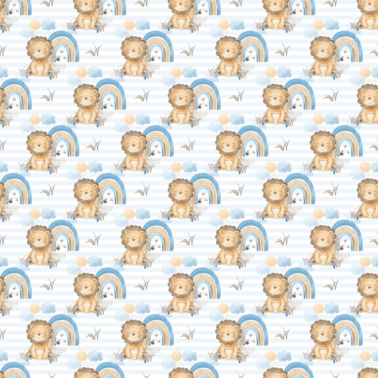 The Blue Rainbow Filled Sky is part of the Lil Lion Fabric Collection printed by Sew Creative Fabrics. Digitally Printed on 100% cotton and measures 43-44" wide.