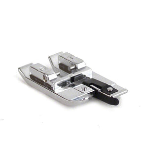 This foot mimics a serged/overlock effect in that it prevents raw edges from fraying by wrapping thread around the edges.