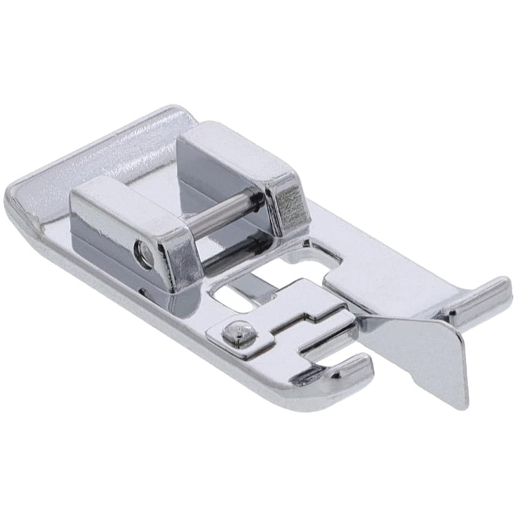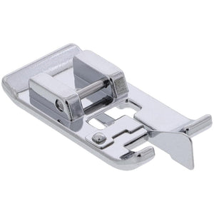This foot mimics a serged/overlock effect in that it prevents raw edges from fraying by wrapping thread around the edges.