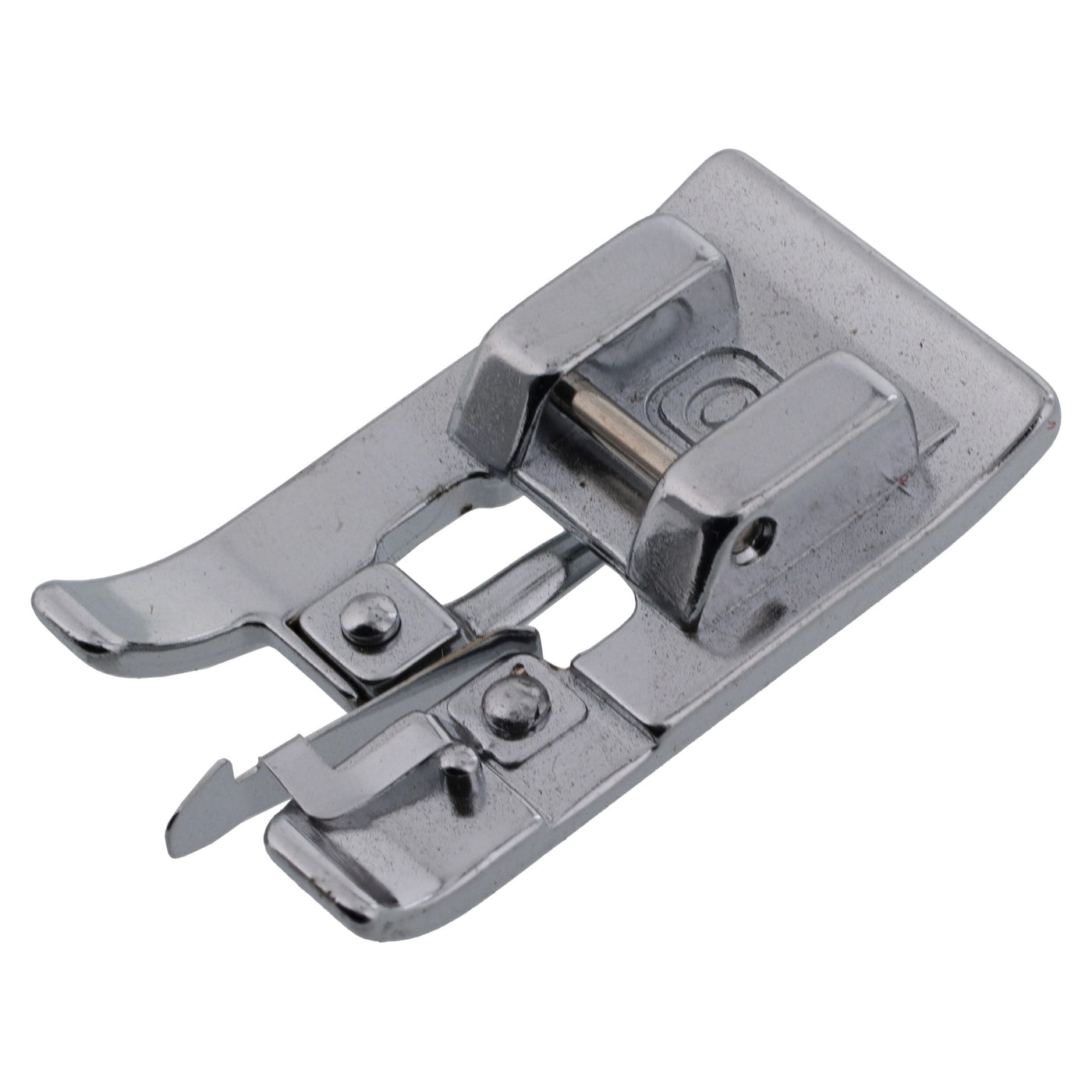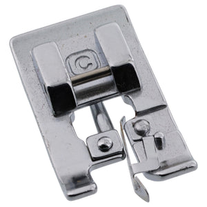 This foot mimics a serged/overlock effect in that it prevents raw edges from fraying by wrapping thread around the edges.