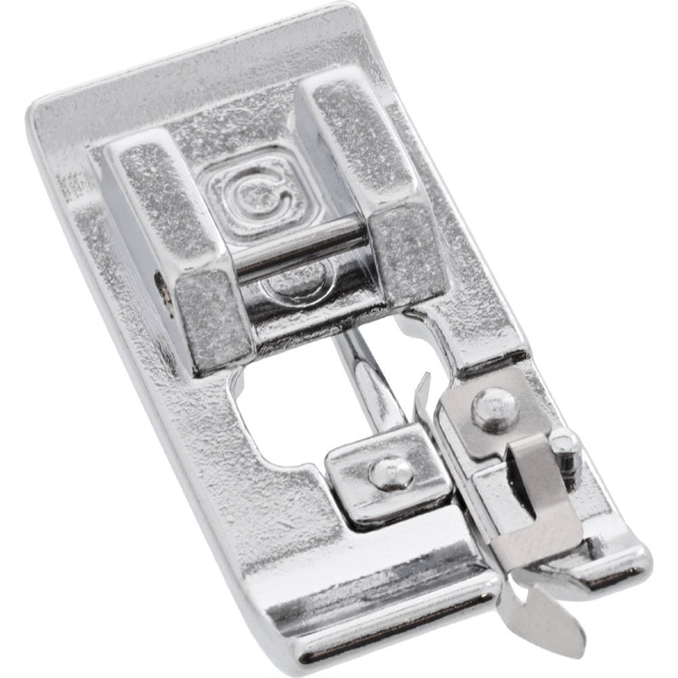 This foot mimics a serged/overlock effect in that it prevents raw edges from fraying by wrapping thread around the edges.