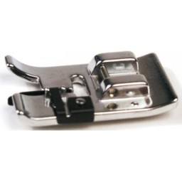 Use with an overcasting stitch to allow thread to wrap around the edge of the fabric to prevent unraveling. The foot guides the fabric and keeps your edges flat by compensating for the lack of friction when the needle makes the right-most stitch. Particularly good for finishing off medium to heavyweight, easily frayed woven fabrics such as tweed, gabardine, and linen.