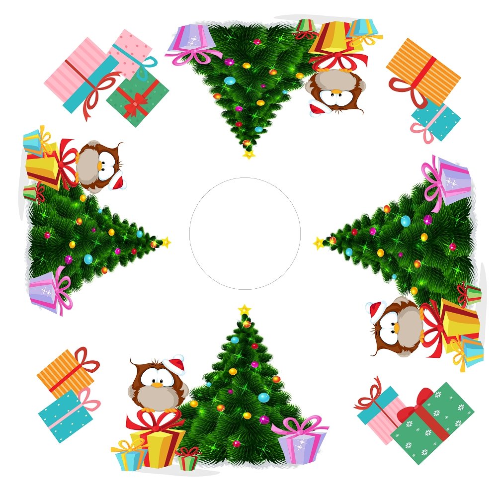 Owl Wish You A Merry Christmas Tree Skirt Fabric Panel