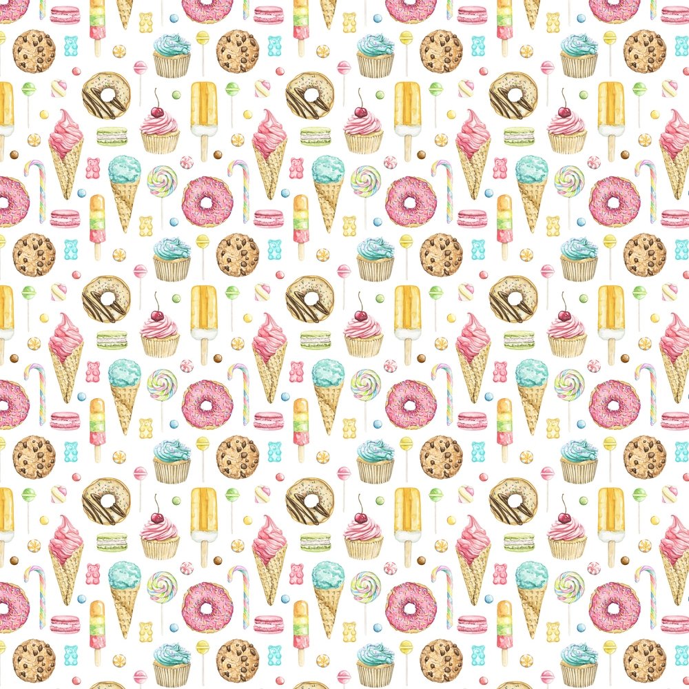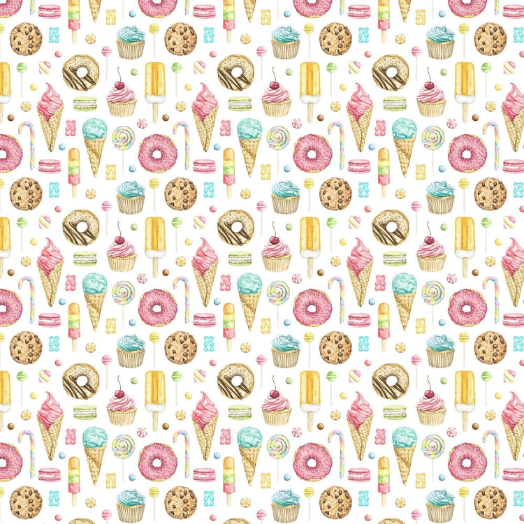 The White Packed All Things Sweet Fabric is part of the Sweet Tooth Fabric Collection printed by Sew Creative Fabrics. Digitally Printed on 100% cotton and measures 43-44" wide.