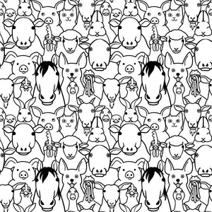 The Black and White Packed Cartoon Farm Animal Faces Fabric is a part of the Animal Fabric Collection printed by Sew Creative Fabrics. Digitally Printed on 100% cotton.