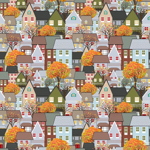 The Packed Cartoon Houses Fabric is part of the Fall and Autumn Collection printed by Sew Creative Fabrics. Digitally Printed on 100% cotton.